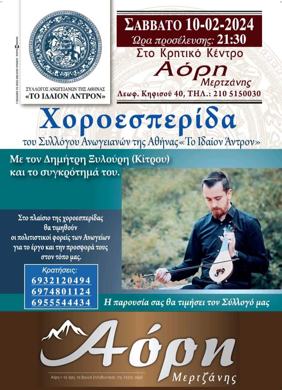 των Ανωγείων, με αφορμή την ετήσια χοροεσπερίδα του Συλλόγου μας. Στο πλαίσιο της