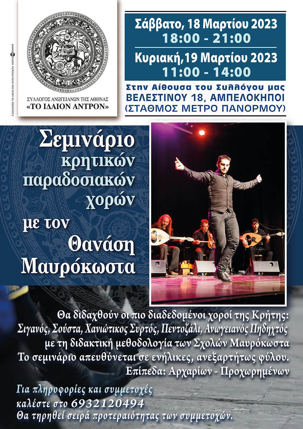“Σεμινάριο Κρητικών χορών με τον κο Θανάση Μαυρόκωστα”